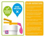 De indicatie van het aantal ballonnen dat gevuld kan worden is gebaseerd op standaard ballonnen van 9” inch. Bij afwijkende vormen en afmetingen kan dit aantal afwijken.